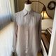 ·异拼接材质缎面透纱长袖古着上衣 ·正面缎面丝质感,背面为透纱。 ·贝壳钮扣。 ·日本品牌。 ·尺寸: 肩:35cm 胸:44cm 袖:61cm 总长:86cm