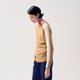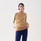 像棉花糖般柔软的白色色块,从颈部延伸到手腕,与驼色的毛衣主体,形成对比。两色以相异材质拼接而成,独特的肌肤触感,穿着舒适。