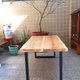 我们把两块日本杉木拼成桌板,长边不切割,只做基本砂磨,保留木材原始的线条,底下是工业风格的90度铁脚,日本杉木温暖的色调配上线条简单的黑色桌脚,组成风格沉稳的餐桌。