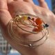 镀金太阳系项链,搭配天然石行星珠。 灵感来源于行星轨道与宇宙运行。 兼具雕塑感与轻盈佩戴感的设计。