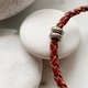 皮革手工编织+925银手环,选用植鞣皮绳纯手工染色编织完成,加上925银甜甜圈造型两个,象征甜甜蜜蜜姻缘圆满,手围皆可定制,手环扣为纯银扣头,精致又馥仙气