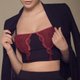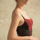 市场上少见的长版内衣设计,少了马甲的束缚感,多了ㄧ般内衣的集中稳定感,能够大方展露腰部曲线。除此之外,罩杯上的弹性蕾丝剪裁更是大胆使用的蝶型花纹,侧身拼接黑色透明的缇花布料,轻薄地得足以透视腰身,想像前胸缀满前所未见的蝶纹蕾丝,辅以若隐若现的s型线条,多了些创新实验的气息,强化宛如艺术品般的精品质感。颜色更突破之前裸色、黑色基本色系,首次尝试了暗夜蓝和烈焰红两种颜色,展现女人冷静与热情两种截然不同的魅力,可拆卸式的肩带设计,可依照不同的场合、身份,做不同的搭配。罩杯无外显钢圈设计只要搭件皮衣或针织衫,即可外出赴约,毫无违和感,进入室内脱下外衣更是惊艳全场。