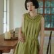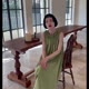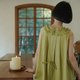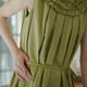 - 領口雙層木耳花邊,修飾肩頸臉型 前身折紙造型,純手工壓褶 順勢加大裙擺,自然垂墜 松葉綠,屬於夏日的降溫色 後腰系帶,可「寬松」亦可「束腰」