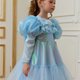 连衣裙采用宽松的A字廓形,裙摆布料充足。建议根据孩子的身高选择标准尺码(不建议选大一号)。参考示例:身高120厘米的模特穿120码,大小刚刚合适。