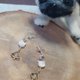 贝母猫头,黄铜扇, 月亮石小珠, 925 纯银耳环(可选豆豆耳环/耳勾或耳线款,图示为豆豆耳环款)