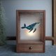 手绘座头鲸在没有开灯的情况下,白天看有种座头鲸在深海中悠游的静谧感。到了黑夜开灯后,职人颜料布置的多和少造成了光线透光的差异,就像时从水底看着阳光的感觉,一方亮一方暗。