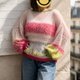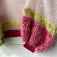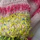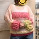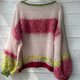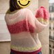 此款针织衫以柔和的宝宝粉色为基底,细致地将多达 10 种以上的纱线,依照各个部分拼接而成。