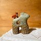 手做狐狸中空花器,深色的坯体刻出不规则形状,涂上质朴的釉色,再饰以小狐狸。经过多道工序而完成的作品,质朴中带着些许的童趣。