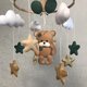 Neutral nursery mobile baby crib. Teddy bear cot decor unisex