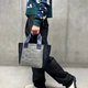 包款以压皱处理的橄榄灰特殊材质tyvek为基底,两侧拼接触感柔顺的意大利制羊羔毛,是一款极具个性的托特包。