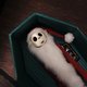 绿色棺材大尺寸约40厘米,穿起来圣诞老人衣装的杰克啾着嘴巴,有这么俏皮的南瓜王吗⋯⋯真可爱⋯⋯
