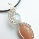 ▶ 海蓝宝月光石项链◀ (附韩国蜡绳,伸缩结)