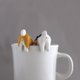 柴犬与猫咪趴在杯缘上摇着屁屁对着主人撒娇,十分疗愈逗趣。