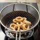 让炸好的食物搁置在网篮中