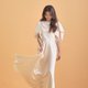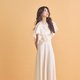 素面质感光泽缎裙-抱着书的女子