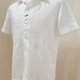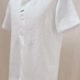 这款柔白色短袖亚麻衬衫的袖子处饰有手工完成的抽綉细节——这是一种微妙而引人注目的技术,体现了耐心、技艺和沉静的优雅。