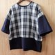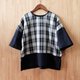 **【 圆领落肩罩衫/ 深蓝拼格纹 】**
