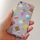 This is a clear iPhone case of the ice cream and ice candy.