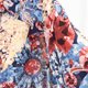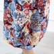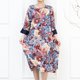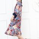 满版蓝红黄色珠宝蝴蝶结七分袖洋装