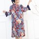 满版蓝红黄色珠宝蝴蝶结七分袖洋装 透气舒适,春夏皆宜
