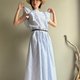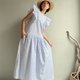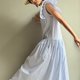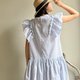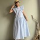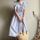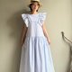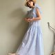小粉蝶爱天空/飞扬的蝴蝶袖蓝白条纹纯棉低腰长版洋装/100棉