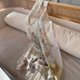 这条“晓梦轻纱”丝巾,捕捉了清晨梦醒时分,阳光透过薄雾或窗纱洒落的柔和景象。它将浅米白、淡粉色与浅灰绿交织的轻柔底色,与如梦境般,深浅有致的黄褐、浅棕、粉红、紫红叶片纹路,透过精湛的移印技术,永恒地印染于轻柔的蚕丝之上。每一道纹路都仿佛是晨光中摇曳的树影,又似花瓣在梦中轻轻飘落的痕迹,充满了温柔与想像。