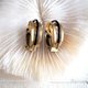 **复古金色配黑色半月形夹式耳环耳夹 高贵优雅 日本二手中古珠宝首饰古着**
