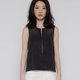 帅气金属拉链半开襟背心,前襟使用异材质剪接,特殊洗旧效果及刻意做的局部微刷破效果,展现女孩神秘率性的一面。