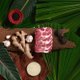 台湾盘克夏黑豚梅花肉、生塩糀(米麴、食盐、酒精)、青葱、蒜头、姜、马告、鲜鸡晶[盐、麦芽糊精、L-麸酸钠、糖、玉米淀粉、鸡肉粉、香料、酵母粉、鸡油、棕榈油、浓缩蛋白质、调味剂(5’-次黄嘌呤核磷酸二钠,5’-鸟嘌呤核磷酸二钠)、胡椒]、刺葱、花椒