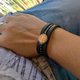 大天使麦可手链由棕质朴的伐木底带和光滑的黑色油性伐木顶层制成。