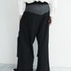 局部固定的两层贴式口袋及收绳裤口宽裤,配上弧形腰头剪接设计,建议搭配不同类型的外搭及上身