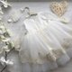Hand made dress with gold lace, pearls and headband for baby girl. Can be as first birthday, baptism, christening and flower girl dress. Also it can be as takehome dress or baby shower gift for baby girl. I can make panties or knit a receiving blanket for this outfit if you need. Your girl will have a great look in this dress.