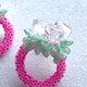 由珠饰作家 HIROMI OOISHI 老师以明亮的粉色珠子编织出圆环,再与 kumakumao 的つまみ细工小花结合,精心打造而成。
