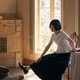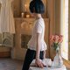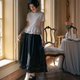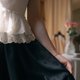 裙身藏著暗紋玫瑰,雙層花邊在下擺暈開。