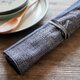 古布收纳袋缝制 7 个格子,可同时将另一伴或全家人的餐具一起收纳,将收纳袋卷曲后,再用侧边的布绳绑住即可,外出携带非常便利。