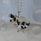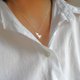 吊坠表面呈现捶打纹的质感, 凹凸不平的表面将光线向四方八面反射开去,配上轻巧闪烁的十字链, 将华丽光泽伸延到极限。