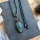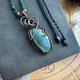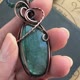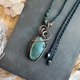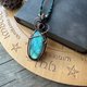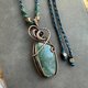 使用拉长石,配以纯铜线,以绕线方式手作而成, 然后再加上复古做旧效果, 再抛光处理令花纹更具深度和对比.