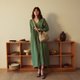 SIERRA MAXI DRESS 绿色V领长袖连身长裙