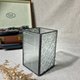 将玻璃切割后四面贴上铜箔再上一层锡,利用锡的结合使容器坚固,一点一滴的把结合处填满圆润,在使用氧化剂加速锡氧化变成黑色的边,使整体各位立体有质感 。