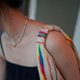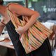 这款包包内外都采用3d刺绣面料,外袋的彩虹色彩具有独特明亮的风格