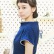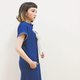 洋装本身的亮点在于领口,领台略推高让整体线条高雅,领口前方设计隐藏的V字方便穿脱,优雅中不失轻松的感觉,古典且俐落的线条。深蓝色的布款让皮肤显白,袖口的剪裁可以修饰手臂。