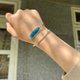 以天然土耳其石为主石,色泽明亮的蓝中带有自然纹路,像收藏了一片天空与大地的交界。 细框手环采用活口设计,配戴更舒适、易于调整。 温润蓝色搭配简约线条,不论日常或正式场合,都能展现清新而独特的气质。 可以戴着洗澡睡觉(除了泡温泉) 如不配戴时用中性肥皂清洗擦拭干净,并放入封口袋收纳起来,这样不容易变黑 如饰品不够亮时可使用擦银布擦拭,再清洗饰品。 擦银布使用后变黑是正常的,请勿清洗擦银布。