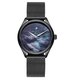 产品以黑色打造不一样的风格。表面以黑色珍珠贝母制成,仿如极光于夜空带来闪烁效果。表面可选加配金属钉于表面,令时分针之走向更明确。腕表表壳以PVD 技术进行黑色电镀处理,配搭黑色真皮牛皮表带或织网带。