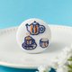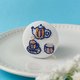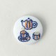 以清爽的蓝色调为基底,一款带有茶具图案的刺绣胸针。