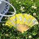With a fan carefully finished by hand one by one by a Japanese fan craftsman in Kyoto