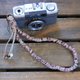 - 一种由麻制成的手持相机背带,其内部编织有丝线,并在点处附有木珠。