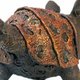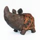 濒临绝种有森林消防员之称的犀牛,其英勇憨厚是陈金旺老师近年来的得意之作,以手挤坯成形,力求Q版,身体与头采1:1公仔憨厚塑形,复以化妆土上色,再以电窑1230度烧成,最后又以腰果漆覆盖。