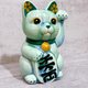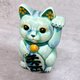 清水烧招财猫以清新的绿色花结晶釉色展现出天然健康的美感,光泽柔和且细腻