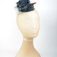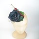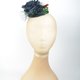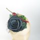 大黑玫瑰和深红辣椒,辅以黑色薄纱和树叶。黑色sinamay底座直径约10厘米,件直径15厘米,高7厘米。用金属发夹固定在头发上。