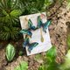 - 精致刺绣耳环/Embroidery earrings Humming的不对称款式有许多种戴法喔! 有无耳后饰的简约造型,也有让蝴蝶恰似翩翩于耳际的三只蝴蝶款,又或是个性化地只戴单耳的双蝴蝶飞舞戴法~ 随着各种心情、服装任意变换搭配!